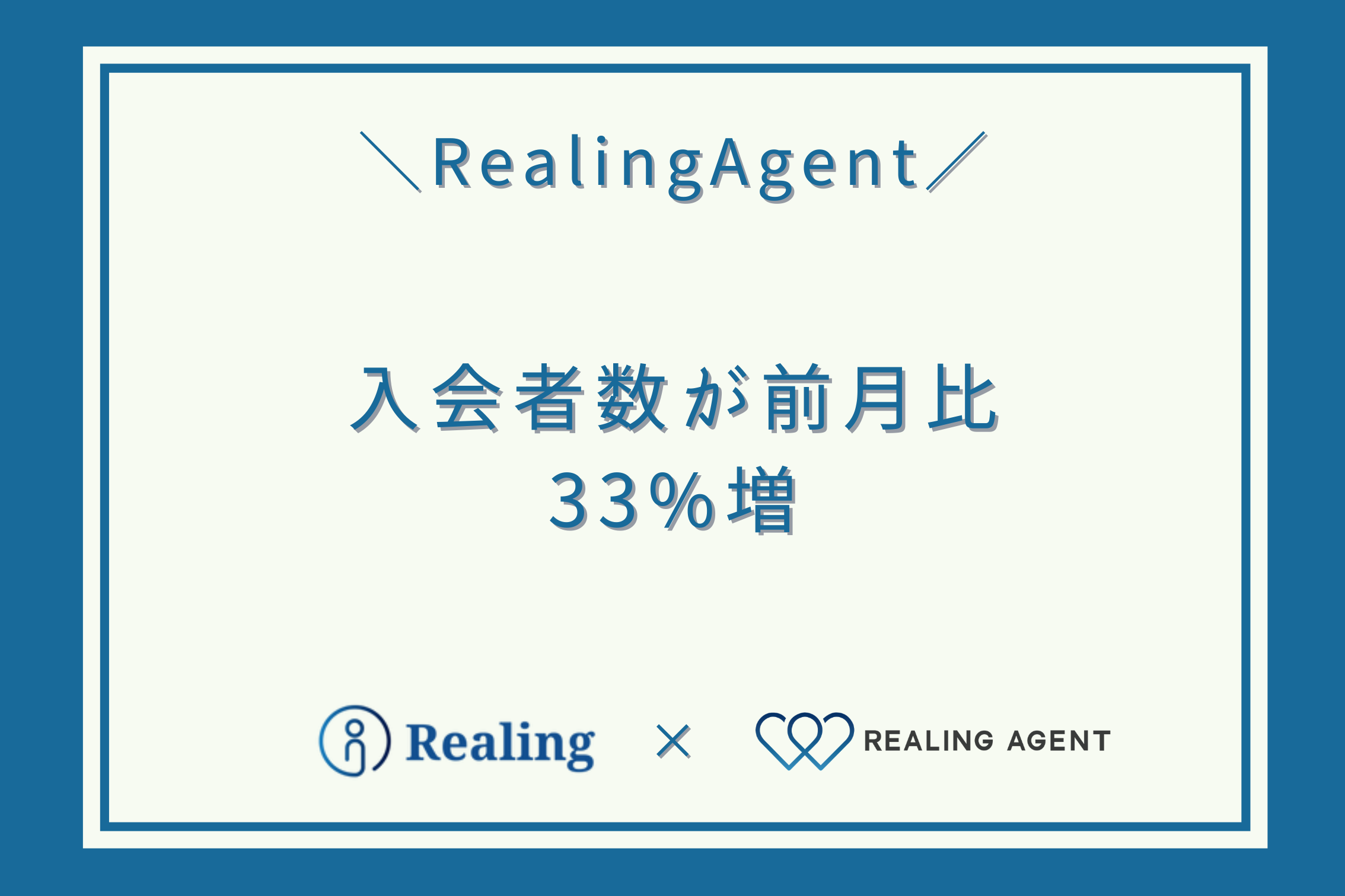 【お知らせ】Realing Agentへの新規入会者数が前月比33%増となりました